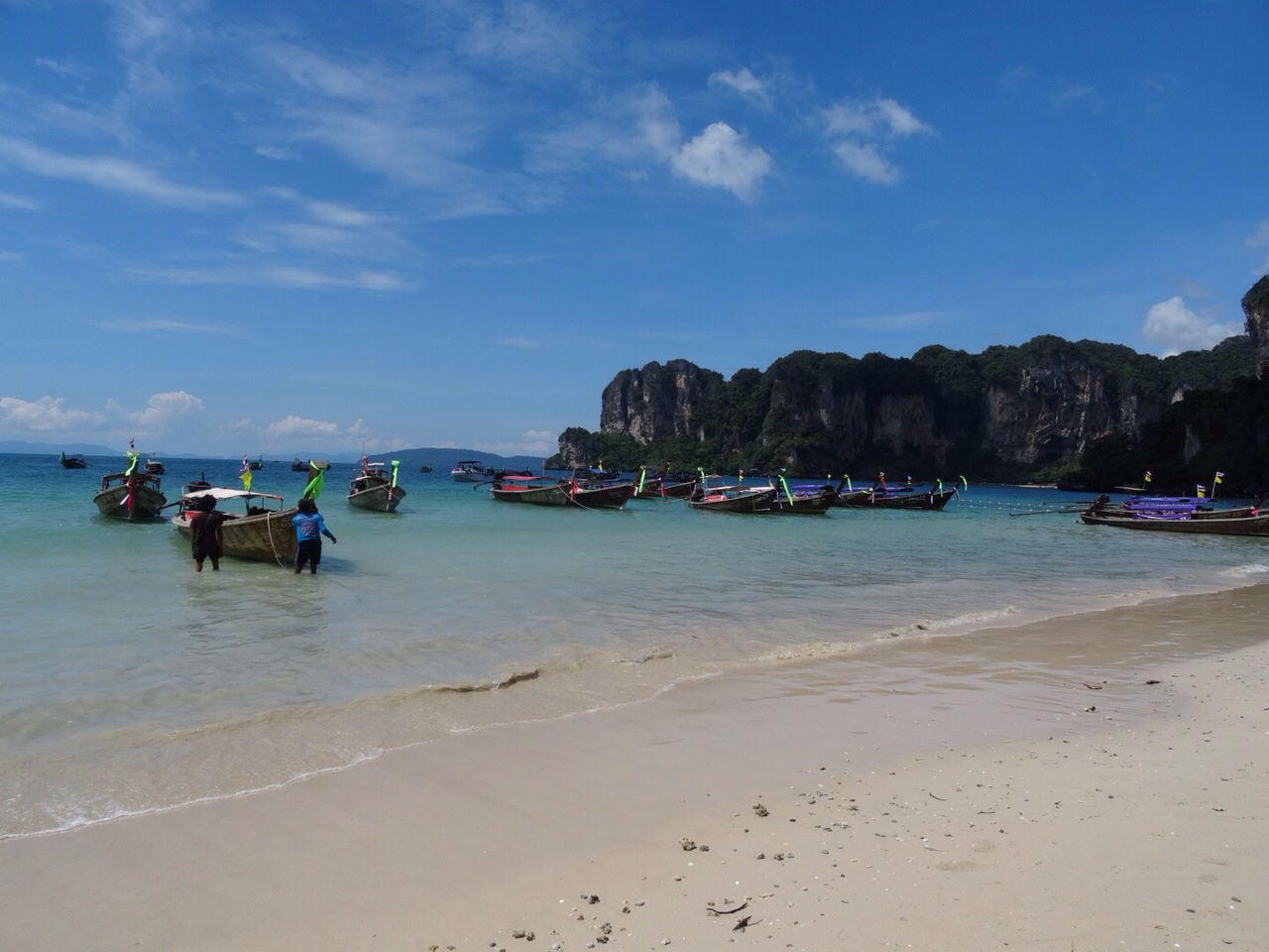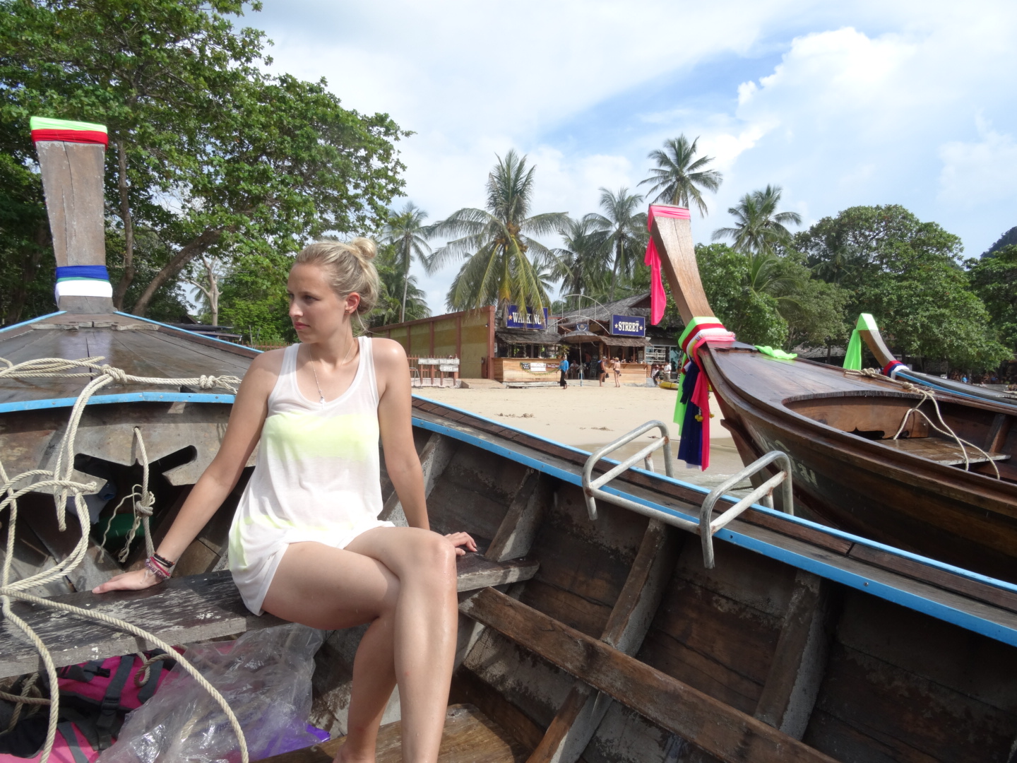 After grabbing some lunch we headed down to the beach. A beach with sand like, as Sophie puts it, icing sugar. Of course it was warmer than a child’s paddling pool but this shore had a few more waves than Aonang. Nothing we couldn’t handle of course. We stayed in the sea for so long we were walking out like a bag of old prunes. Well those two were. I still held the stature of Greek god. Aye…?