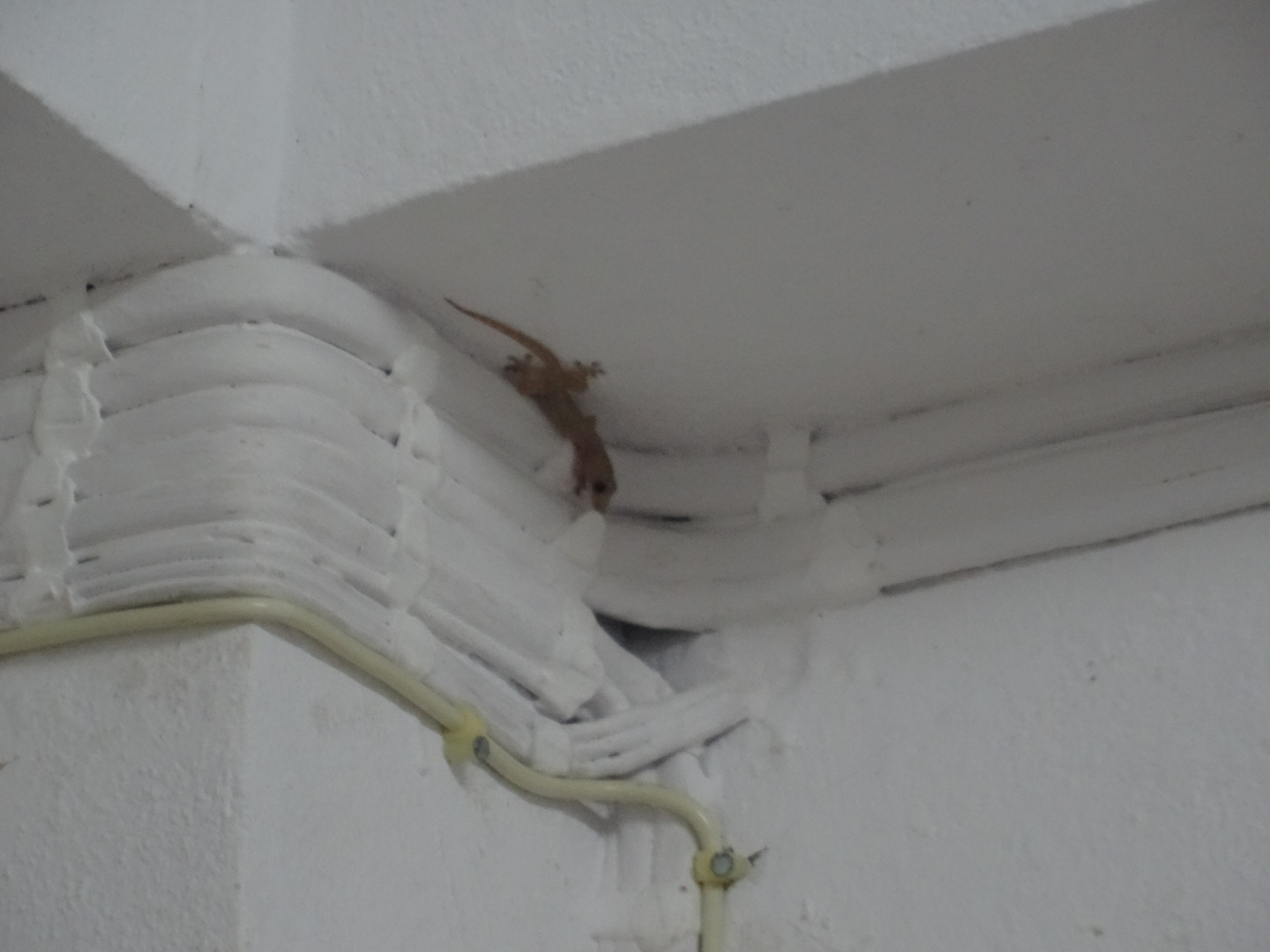 I jolt up, and there on the wall, running up and down at the speed of light, was a gecko. A baby gecko. Quite a cute looking thing really. But bloody fast. He has run us ragged trying to catch him and chuck him out the door. Until he seemingly vanished and we gave up.